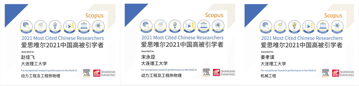 宋永臣、赵佳飞、姜孝谟教授入选Elsevier中国高被引学者。