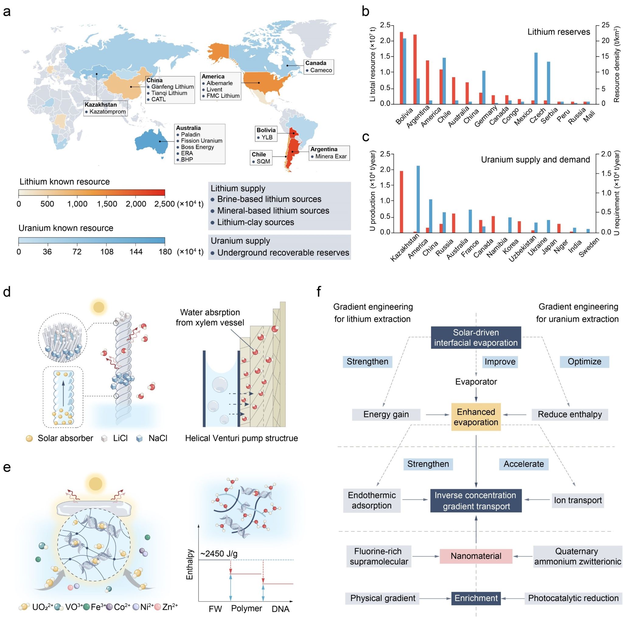 通过利用太阳能诱导水蒸发,SDIE系统可以产生离子浓度、盐度和温度梯度,从而实现水、绿色电力和金属矿物的生产和提取。然而,SDIE系统的性能和长期稳定性受到对驱动能量和物质梯度形成的潜在机制的有限理解的限制。在这篇文章中,研究团队概述了典型的基于SDIE的水-能源-矿物联合生产系统,并提出了通过调节能量和物质传递过程来优化梯度形成的合理策略,目的是强化SDIE联产系统的能源和资源输出。此外,还探索了使用梯度工程整合多个物理场的混合方法,以实现协同增强,同时减轻梯度冲突。最后,概述了开发下一代SWEM的未来方向,旨在增强可持续能源供应链的可持续性和弹性。