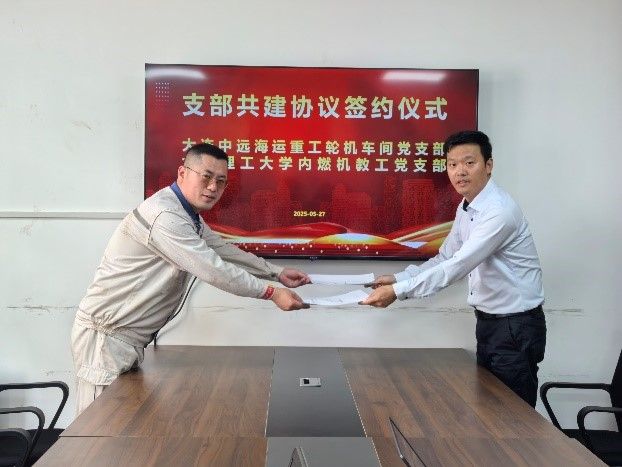 内燃机教工党支部与大连中远海运重工轮机车间党支部签署党建共建协议,并联合举办以“一融双高加速跑、锻造动力新优势”为主题的共建活动。