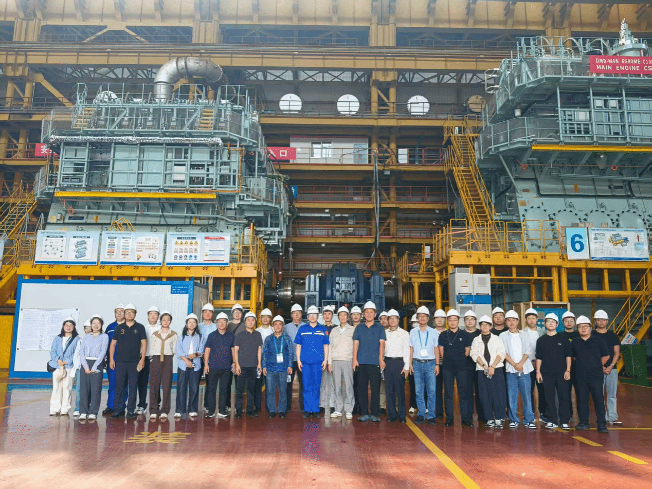 辽宁省内燃机重点实验室,重点展示了:自主研制并获得国际首张船级社原理认可证书的氨/柴油双直喷二冲程原理样机、国内首台甲醇/柴油双直喷高速机样机、甲醇发动机增程式混合动力台架、460 kW甲醇直喷压燃发动机试验台架、发动机光学可视化台架、甲醇重整发动机等试验平台。专家学者对实验室在低/零碳燃料、多能源耦合、先进测量与可视化等方向的系统布局与工程实践给予积极评价,认为这些平台为内燃机碳中和技术的关键科学问题研究与工程示范提供了坚实支撑。还参观了大连船用柴油机有限责任公司,实地调研了高度达16米的船用低速机。